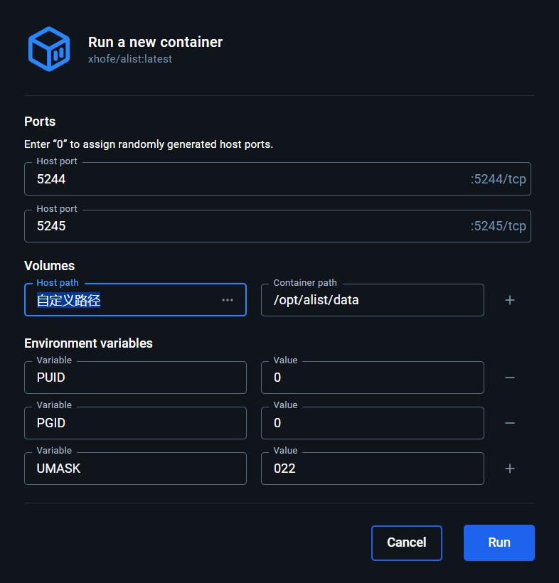 docker run -d --restart=unless-stopped -v /etc/alist:/opt/alist/data -p 5244:5244 -e PUID=0 -e PGID=0 -e UMASK=022 --name="alist" xhofe/alist:latest进入容器内部,执行以下命令: