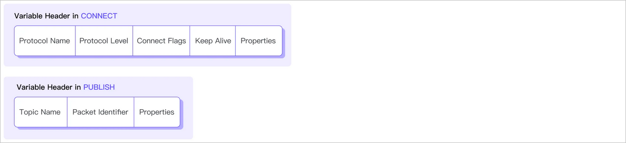 PUBLISH 报文的可变报头则按顺序包含了主题名、报文标识符和属性这三个字段。