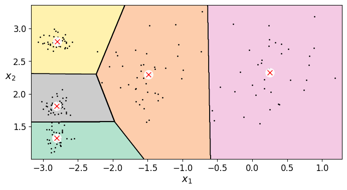 def plot_decision_boundary(clusterer, X, resolution=1000, show_centroids=True, show_xlabels=True, show_ylabels=True):